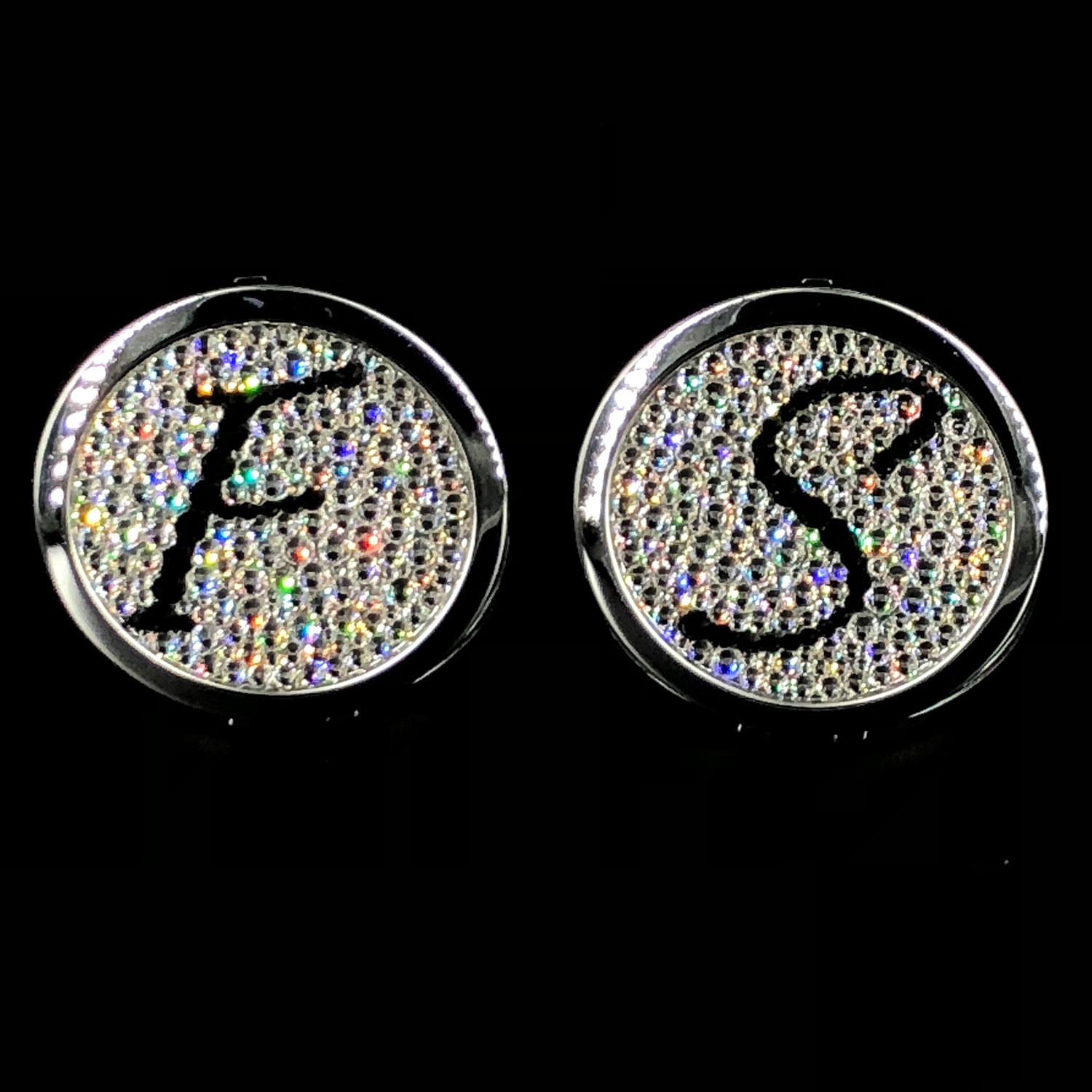 A stunning dual-mirror handbag compact, custom-embellished inclear Swarovski with an initial of your choice in script lettering. Comes with a velvet gift bag.