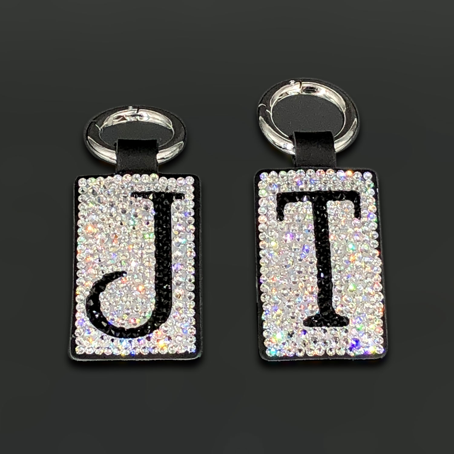 Black leather Bagnet customised in silver Swarovski with an initial of your choice. Price includes FREE 1st Class Signed For UK postage. Please allow 3 weeks for delivery.
